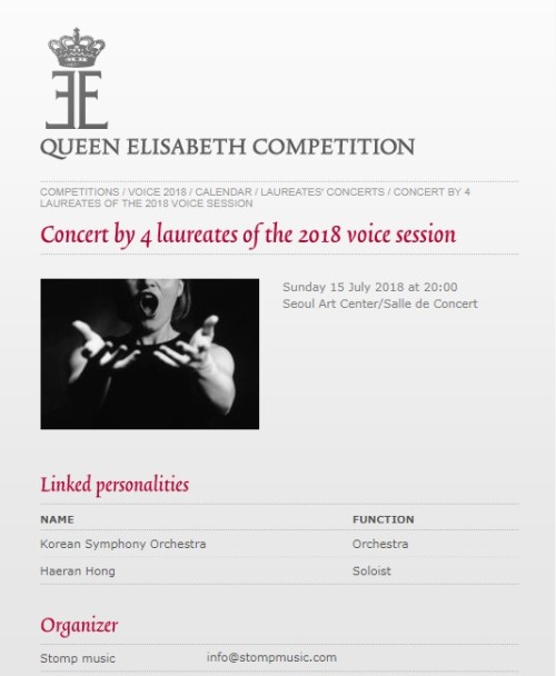 소프라노 홍혜란이 서울에서 처음 열리는 '퀸 엘리자베스 콩쿠르 위너 콘서트' 무대에 오른다.소속사 스톰프뮤직에 따르면 홍혜란은 7월 15일 오후 5시 예술의전당 콘서트홀에서 개최되는 '2018 퀸 엘리자베스 콩쿠르 갈라 콘서트'에 참여한다.벨기에 '퀸 엘리자베스 콩쿠르'는 쇼팽, 차이코프스키와 함께 세계 3대 대회로 꼽힌다. 홍혜란은 2011년 아시아인 최초로 '퀸 엘리자베스 콩쿠르'에서 성악 부문 우승을 차지해 주목을 받았다.'2018 퀸 엘리자베스 콩쿠르'는 5월 첫 번째 라운드 이후 준결승 진출자 24인 발표, 세미 파이널에서 결승진출자 12인 발표, 최종 파이널에서 순위가 발표되는 순서로 진행된다. 경연이 모두 끝나면 서울에서 입상자 콘서트가 펼쳐진다.홍혜란은 이번 갈라 콘서트에서 2018 성악부문 파이널리스트와 코리안심포니오케스트라가 함께 무대를 꾸밀 예정이다.한편, 2016년 3월부터 한국예술종합학교 객원교수를 맡고 있는 홍혜란은 현재 미국 메트로폴리탄 오페라를 중심으로 활발하게 활동 중이다. 2018년 보스톤 오디세이 오페라단의 '잔 다르크'에서 타이틀 롤과 5월 30일 콘서트 오페라 '피가로의 결혼'이 예정돼 있다.