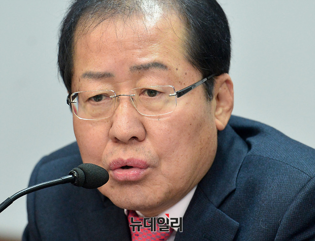 홍준표 자유한국당 대표가 25일 오전 여의도 중앙당사에서 열린 중소기업중앙회장단 간담회에 참석해 발언하고 있다. 홍 대표는 이후 생활정치 현장 탐방으로 대한상공회의소 현장을 방문한다.