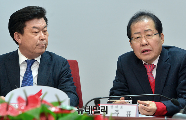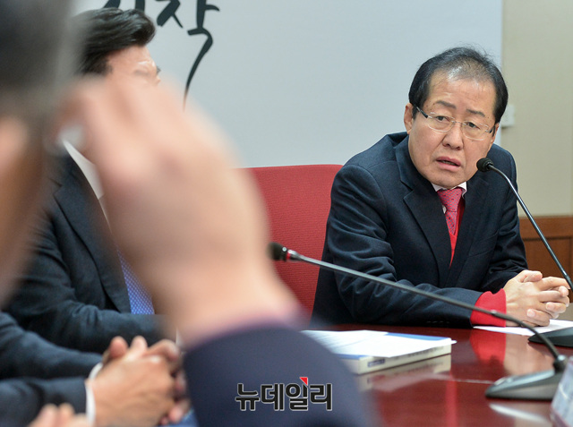 홍준표 자유한국당 대표가 25일 오전 여의도 중앙당사에서 열린 중소기업중앙회장단 간담회에 참석해 모두발언 하고 있다. 홍 대표는 이후 생활정치 현장 탐방으로 대한상공회의소 현장을 방문한다.