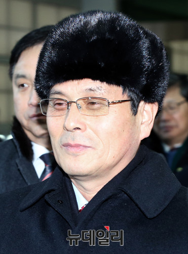 [포토] 선발대 대동하고 입경하는 윤용복 북한 체육성 부국장