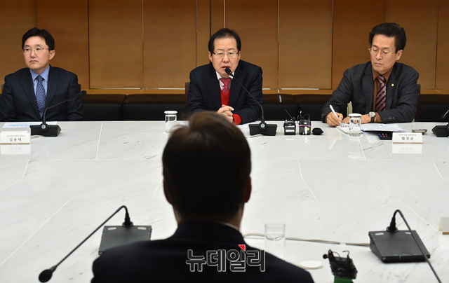 홍준표 자유한국당 대표가 25일 오후 서울 중구 대한상공회의소에서 열린 '자유한국당-대한상공회의소 정책간담회'에서 모두발언을 하고 있다.