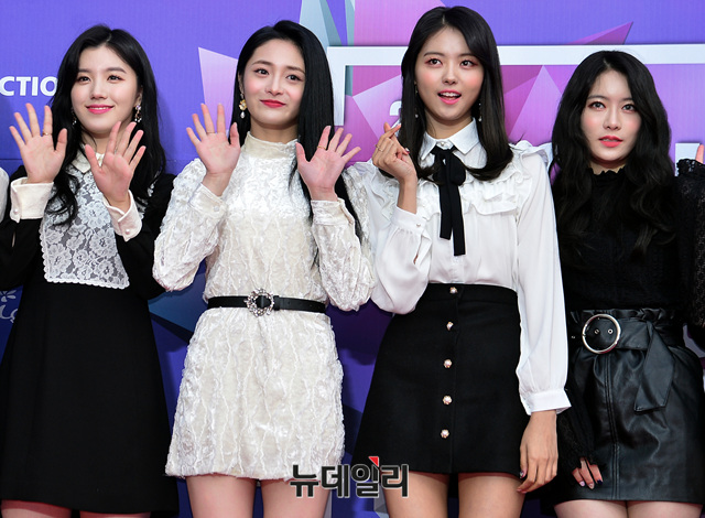 그룹 프리스틴(PRISTIN : 나영, 로아, 유하, 은우, 레나, 예하나, 성연, 시연, 카일라)이 25일 오후 서울 구로구 고척스카이돔에서 열린 '하이원 서울가요대상'에 참석해 포즈를 취하고 있다.