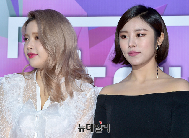 그룹 마마무(MAMAMOO : 솔라, 문별, 휘인, 화사)가 25일 오후 서울 구로구 고척스카이돔에서 열린 '하이원 서울가요대상'에 참석해 포즈를 취하고 있다.