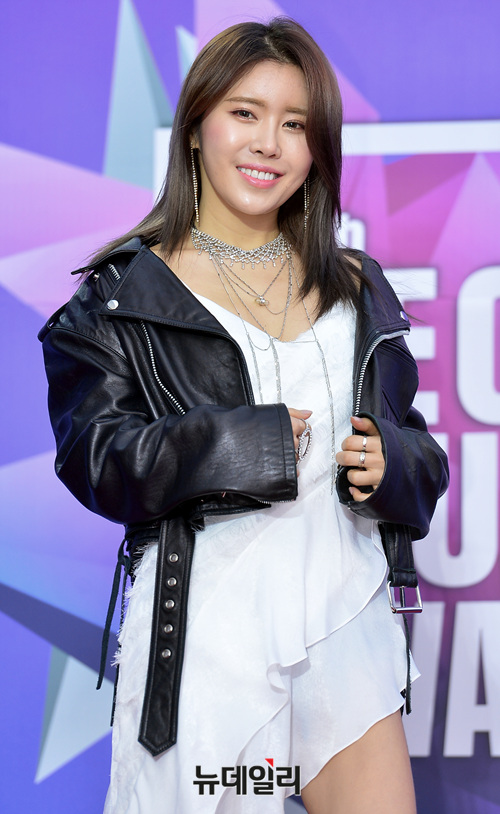 가수 수란이 25일 오후 서울 구로구 고척스카이돔에서 열린 '하이원 서울가요대상'에 참석해 포즈를 취하고 있다.