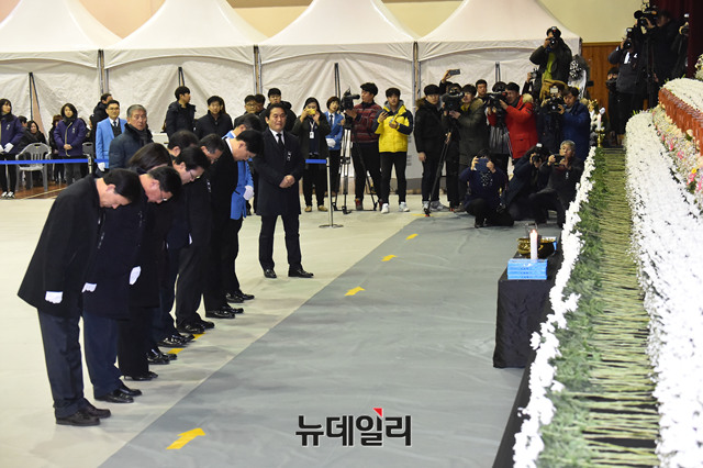 경남 밀양시 삼문동 밀양문화체육회관에 마련된 세종병원 화재 희생자 합동분향소로를 찾아 분향하고 있다.