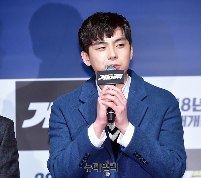 배우 김도훈이 29일 오전 서울 강남구 CGV압구정에서 열린 영화 '게이트(감독 신재호)' 제작보고회에서 인사말을 하고 있다.