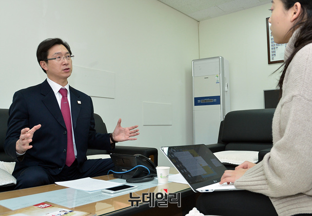 6·13 지방선거에서 경남도지사 출마를 선언한 강민국 경남도의원이 지난 29일 경남도청 서부청사에서 인터뷰를 갖고 질문에 답하고 있다.