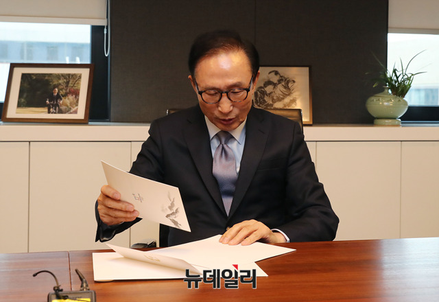 [포토] 평창올림픽 초청장 전달받은 이명박 전 대통령