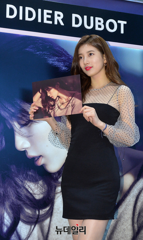 가수 수지가 31일 오후 서울 롯데백화점 본점에서 열린 '디디에두보(DIDIER DUBOT)' 팬사인회에 참석해 사인을 들어 보이고 있다.