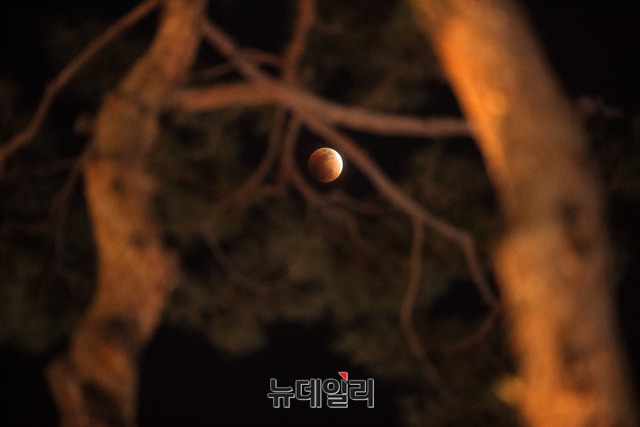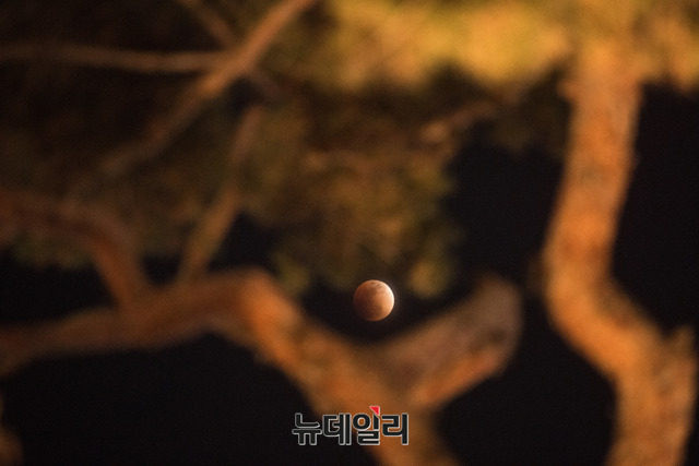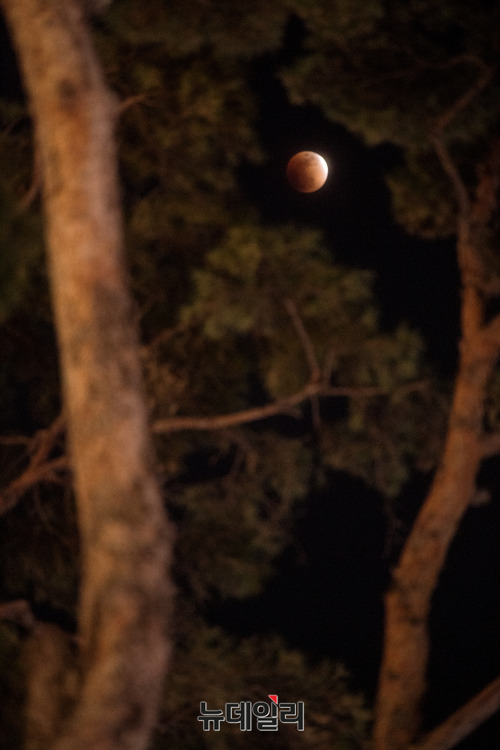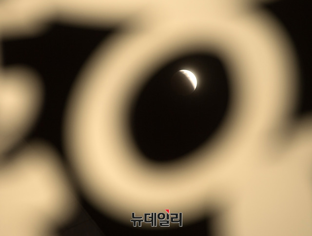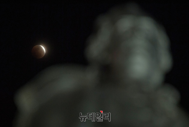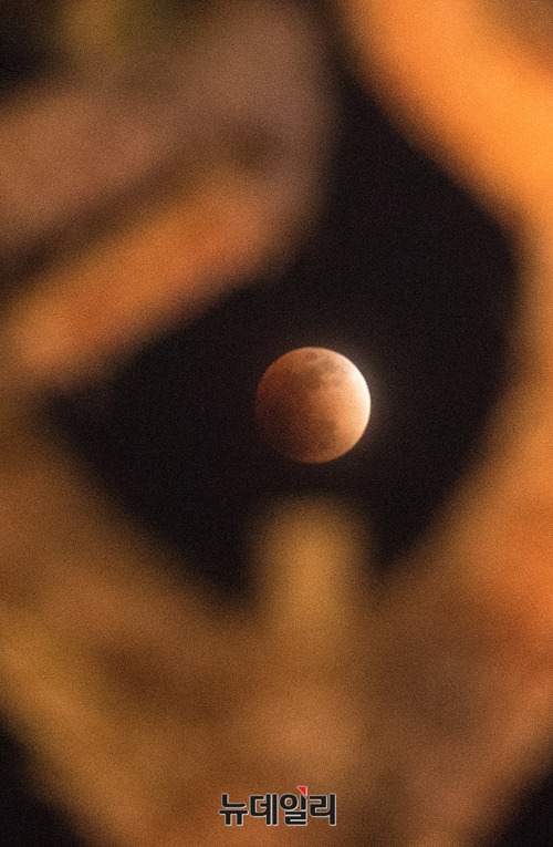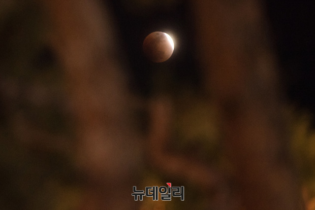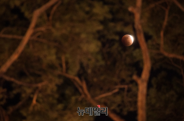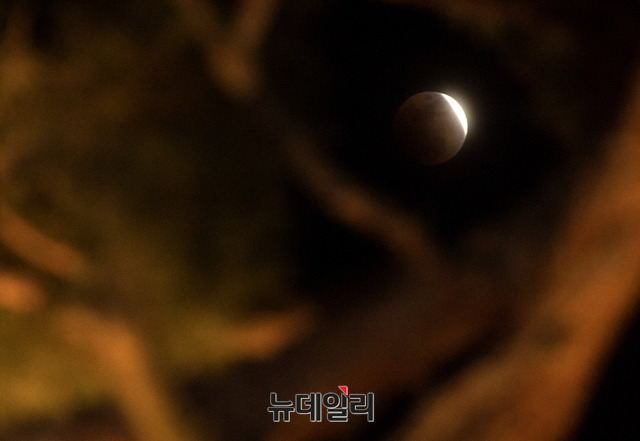 31일 밤부터 진행된 개기월식으로 달이 그림자에 가려져 점점 붉게 변하고 있다. 한국천문연구원은 밤 8시 48분쯤 달의 왼쪽 아래가 어두워지는 월식이 시작 돼 9시 51분부터 11시 8분까지 달 전체가 어둡고 붉게 변하는 개기월식이 나타나겠다고 밝혔다.