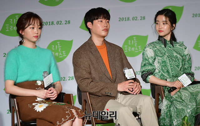 배우 류준열, 김태리가 1일 오전 서울 중구 동대문 메가박스에서 열린 영화 '리틀 포레스트(감독 임순례)' 제작보고회에서 포토타임을 직후 무대를 내려오고 있다.