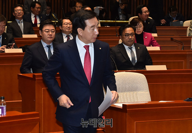 [포토] 단상으로 향하는 김성태 한국당 원내대표