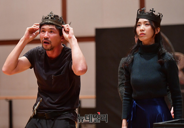 배우 박지연과 황정민이 1일 오후 서울 서초구 예술의전당에서 진행된 연극 '리차드3세' 연습실 공개행사에서 하이라이트 장면을 시연하고 있다.