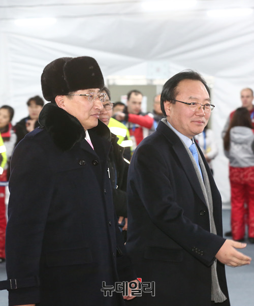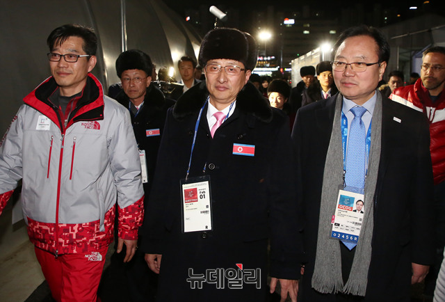 [포토] 올림픽 선수촌으로 입촌하는 북한 원길우 체육성 부상