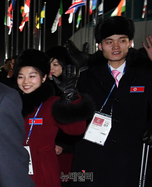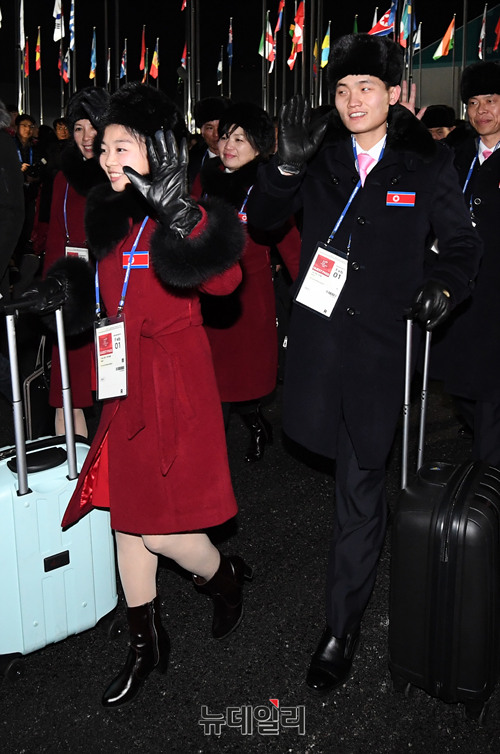 2018 평창동계올림픽에 출전하는 북한대표 피겨스케이팅 김주식, 렴대옥 선수가 2일 오후 강원도 강릉 올림픽 선수촌에 도착하고 있다.(사진=2018평창사진공동취재단)