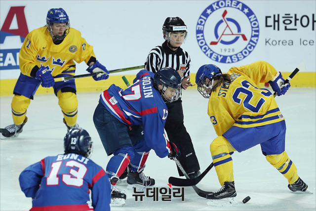 [포토] 스웨덴과 경기하는 여자 아이스하키 남북단일팀