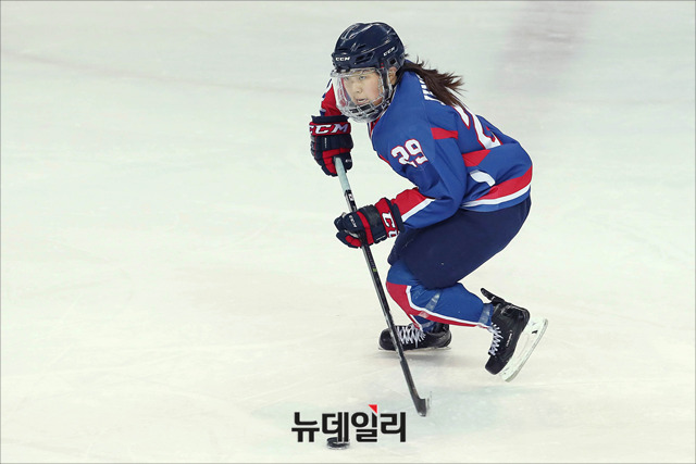 2018 평창 동계올림픽 여자 아이스하키 남북단일팀 선수들이 4일 오후 인천 선학국제빙상경기장에서 스웨덴과 평가전을 갖고 있다. (사진=공동취재단)