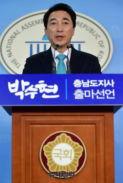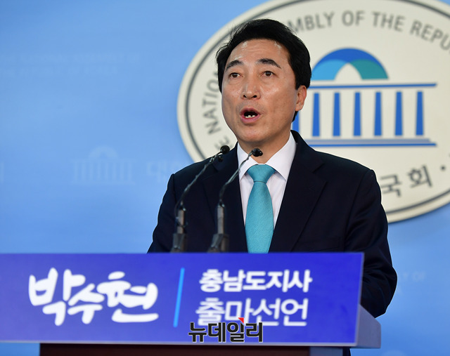 박수현 전 청와대대변인이 5일 오후 국회 정론관에서 기자회견을 갖고 충남도지사 출마를 선언하고 있다.