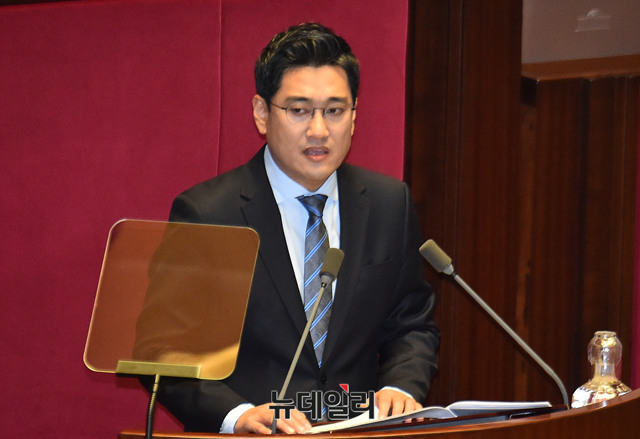 오신환 바른정당 원내대표가 5일 오후 국회에서 열린 본회의에서 비교섭단체 대표연설을 하고 있다.
