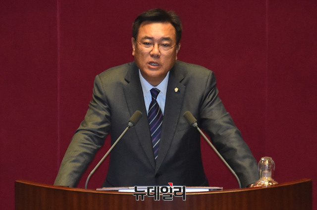 정진석 자유한국당 의원이 5일 오후 국회에서 열린 본회의에서 정치-통일-외교-안보 분야 대정부질문을 하고 있다.