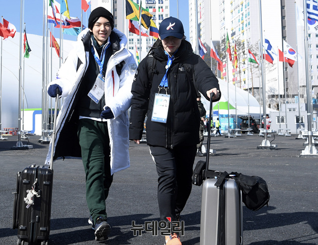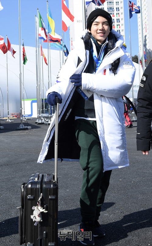 2018 평창동계올림픽 피겨스케이팅 대표 차준환이 6일 오후 강릉 선수촌을 나서고 있다.