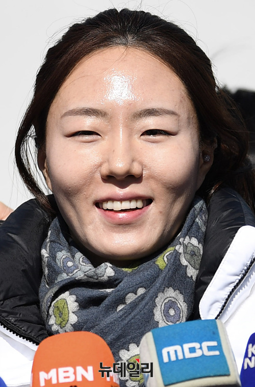 2018 평창동계올림픽 스피트스케이팅에 출전하는 이상화 선수가 6일 오후 강릉선수촌에서 각오를 밝히고 있다.