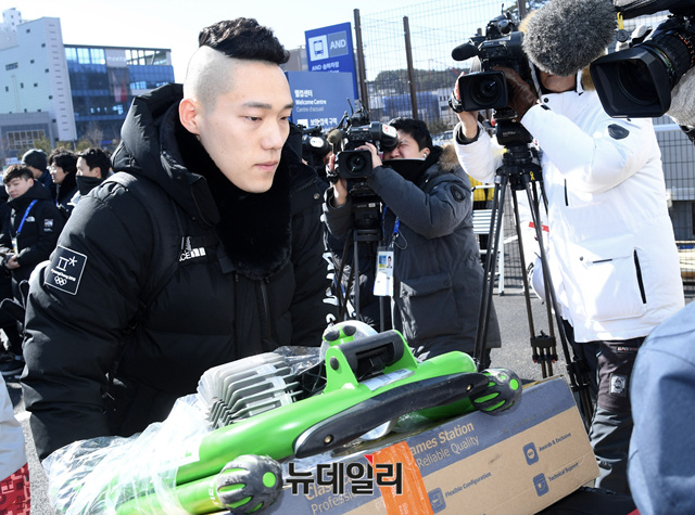 2018 평창동계올림픽 스피트스케이팅에 출전하는 모태범 선수가 6일 오후 강릉선수촌에 들어서고 있다. (사진=2018평창사진공동취재단)