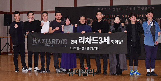 충무로 섭외 1순위인 황정민의 연극 복귀는 의외의 선택이다. '군함도', '아수라', '곡성', '검사외전', '히말라야', '베테랑', '국제시장', '신세계', '댄싱퀸', '부당거래' 등 흥행에 잇따라 성공하며 한국 영화계에 없어서는 안 될 독보적인 존재이기 때문이다.앞서 열린 제작발표회에서 "관객들이 '쟤 영화 그만하고 연극만 했으면 좋겠어'라고 할 정도로 너무 잘하고 싶다"고 말했던 황정민은 "막상 해보니 굉장히 어렵다. 말에 대한 중요함, 대사 단어 하나하나의 뉘앙스가 중요하다는 걸 느꼈다"며 고충을 털어놨다."영화는 찍을 때만 집중해서 연기하니까 호흡이 짧다. 그 동안 긴 호흡을 잊고 있었는데, 다시 한 번 공부하고 배우는 계기가 됐다. 번역본을 보는 것이 어렵거나 힘들지는 않았지만 고어체가 주는 길이감, 발음, 장단음을 정확하게 맞추기 위해 노력하고 있다."연극 '리차드 3세'는 2월 6일부터 3월 4일까지 예술의전당 CJ토월극장에서 공연한다. 관람료 3만3000~8만8000원. 문의 1544-1555.