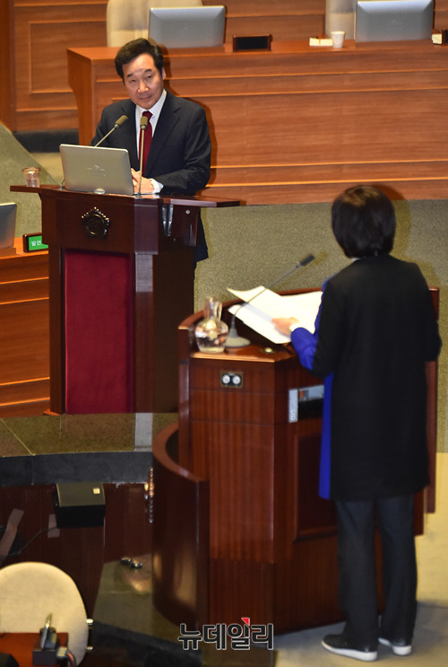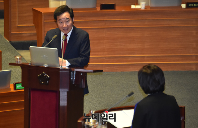 이낙연 국무총리가 7일 오후 국회 본회의장에서 열린 교육-사회-문화 분야에 관한 대정부질문에서 의원들의 질문에 답하고 있다.