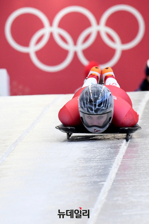 '스켈레톤'은 썰매에 엎드려서 인공 얼음으로 된 트랙을 고속으로 질주하는 경기다. 오는 15일부터 윤성빈, 김지수 선수가 16일부터 정소피아 선수가 출전한다. (사진=2018평창사진공동취재단)