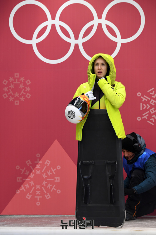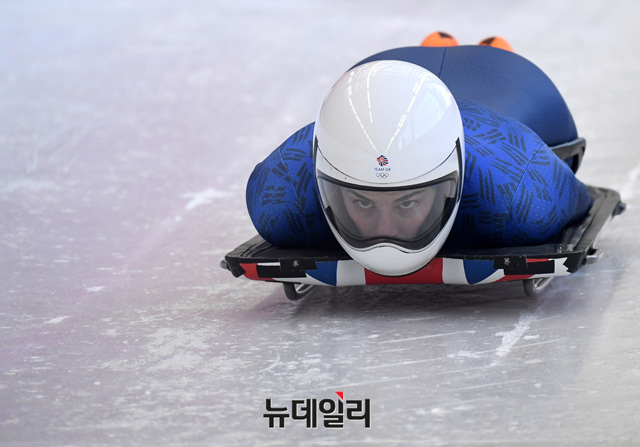 2018 평창동계올림픽 스켈레톤(Skeleton)에 출전하는 각국 대표팀 선수들이 7일 오후 강원도 평창군 슬라이딩센터에서 연습 주행을 하고 있다.