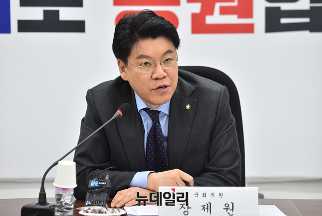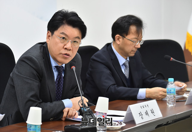 장제원 자유한국당 의원이 8일 오전 국회 정책위회의실에서 열린 사법개혁추진단 전체회의에서 발언을 하고 있다.