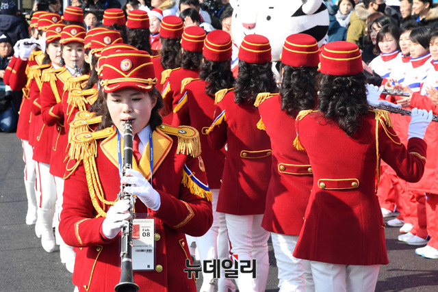 [포토] 선수총 입촌식서 공연하는 北응원단