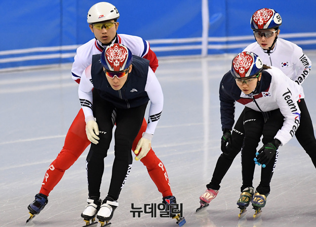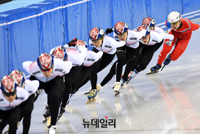 2018 평창동계올림픽에 출전하는 남북 쇼트트랙 대표팀이 8일 오후 강원도 강릉아이스아레나에서 공동 훈련을 하고 있다. (사진=2018평창사진공동취재단)
