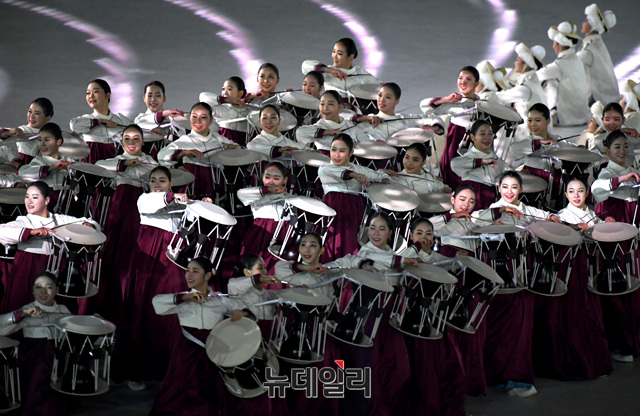 2018 평창동계올림픽 개막식 공연이 9일 오후 강원도 평창군 올림픽스타디움에서 펼쳐지고 있다.