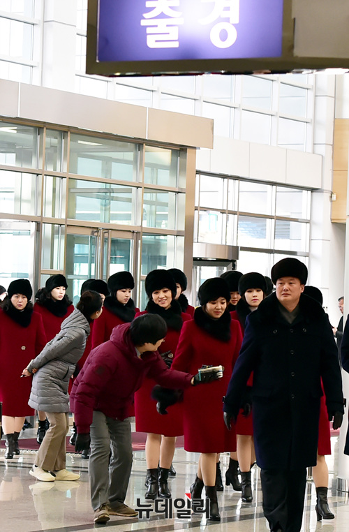현송월 북한 삼지연관현악단장과 북한 예술단이 12일 오전 경기 파주 도라산 남북출입사무소(CIQ)를 통해 북한으로 돌아가고 있다.
