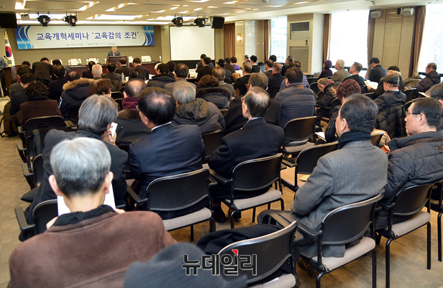 천세영 충남대학교 교육학과 교수가 12일 오후 한국프레스센터에서 열린 '교육개혁세미나 : 교육감의 조건'에 참석해 주제 발표를 하고 있다.이날 토론회는 천세영 충남대학교 교육학과 교수, 김태완 한국미래교육연구원장, 우동기 대구시 교육감이 각각 '교육감선거폐지, 교육기적 다시 한 번', '미래세대의 교육을 위한 교육감의 역할과 책임', '대구행복역량교육 8년의 성과와 과제'를 주제로 발제를 맡았다.토론에는 곽병선 전 한국장학재단 이사장, 안상진 사교육걱정없는세상 정책대안연구소장, 윤증현 윤경제연구소장, 이명희 공주대학교 교수, 최미숙 학교를사랑하는학부모모임 대표가 나섰다.