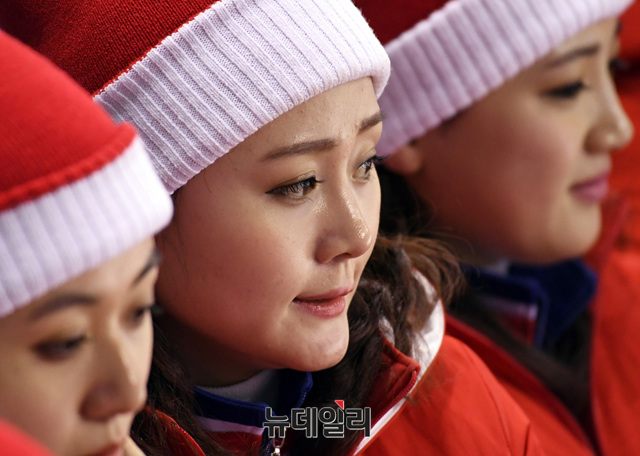[포토] 남북단일팀 경기 지켜보는 北응원단