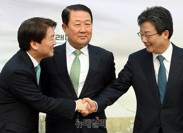 [포토] 출범 후 첫 악수 나누는 유승민-안철수