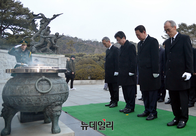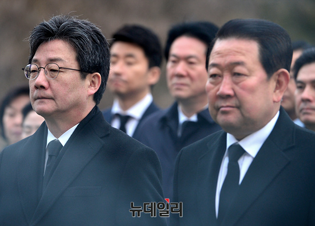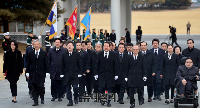 박주선, 유승민 바른미래당 공동대표가 14일 오전 서울 국립서울현충원에서 참배하고 있다.