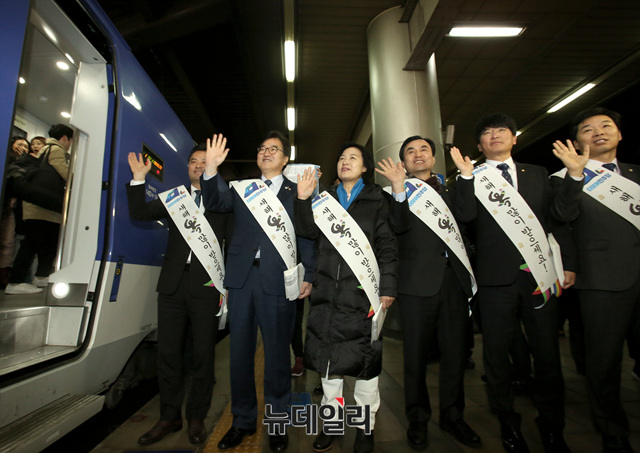 [포토] 귀성객 향해 손흔드는 더불어민주당