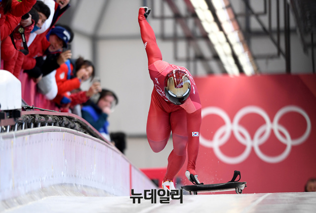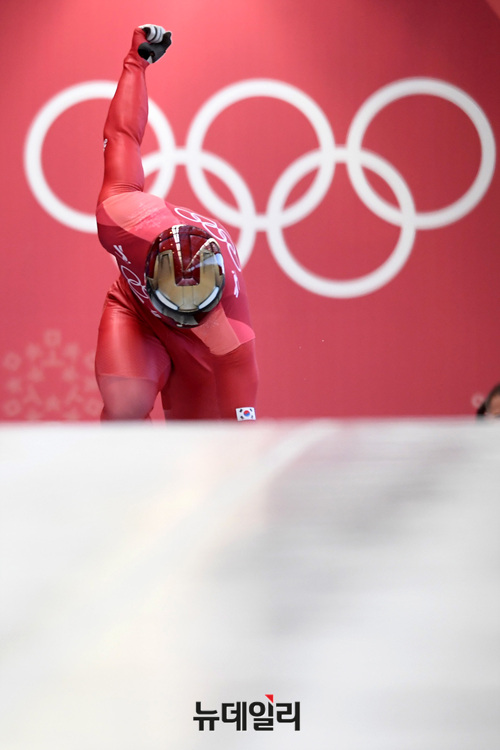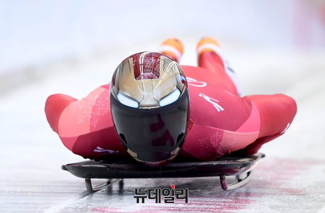2018 평창동계올림픽 남자 스켈레톤 경기에 출전한 윤성빈이 15일 오후 강원도 평창 올림픽슬라이딩센터에서 주행하고 있다.