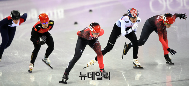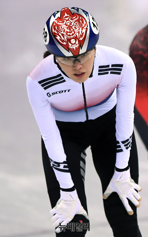 김아랑 선수가 17일 오후 강원 강릉 아이스아레나에서 열린 여자 쇼트트랙 스피드스케이팅 1,500m 예선에 출전해 레이스를 펼치고 있다. (사진=2018평창사진공동취재단)