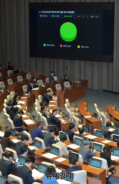 [포토] 국회 본회의 '5.18 예우 관한 법률' 가결