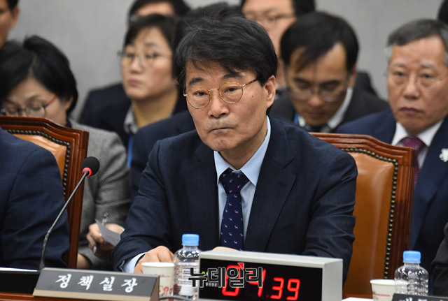 장하성 대통령 정책실장이 21일 오전 국회에서 열린 운영위원회 전체회의에 참석해 의원들의 질의에 답하고 있다.
