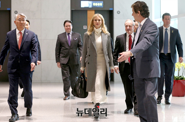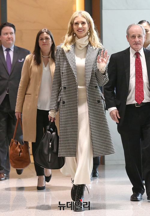 도널드 트럼프 미국 대통령의 장녀 이방카(Ivanka Trump) 백악관 보좌관이 23일 오후 인천국제공항 제2여객터미널을 통해 방한했다.이번 방한에는 짐 리시 공화당 상원의원, 새라 허커비 샌더스 백악관 대변인, 앨리슨 후커 국가안보회의(NSC) 보좌관이 등이 함께했다.이방카 보좌관 일행은 이날 청와대로 이동해 문재인 대통령 내외와 상춘재에서 만찬을 가질 예정이다. 이어 24, 25일 평창올림픽 미국팀 경기 관전, 선수단 격려 일정을 소화하고, 폐회식에 참석한 뒤 26일 돌아갈 예정이다. (사진=공동취재단)