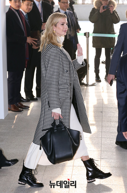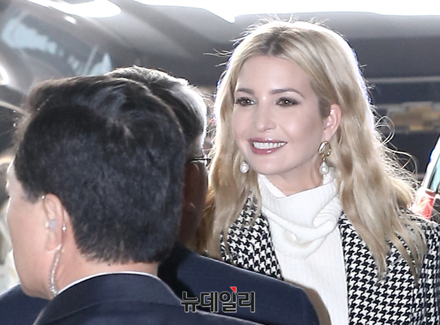 도널드 트럼프 미국 대통령의 장녀 이방카(Ivanka Trump) 백악관 보좌관이 23일 오후 인천국제공항 제2여객터미널을 나서고 있다.이번 방한에는 짐 리시 공화당 상원의원, 새라 허커비 샌더스 백악관 대변인, 앨리슨 후커 국가안보회의(NSC) 보좌관이 등이 함께했다.이방카 보좌관 일행은 이날 청와대로 이동해 문재인 대통령 내외와 상춘재에서 만찬을 가질 예정이다. 이어 24, 25일 평창올림픽 미국팀 경기 관전, 선수단 격려 일정을 소화하고,폐회식에 참석한 뒤 26일 돌아갈 예정이다. (인천=뉴데일리 공준표)