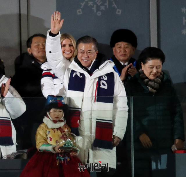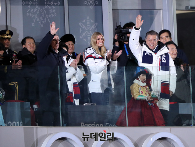 [포토] 폐회식 자리 함께한 문재인-이방카-김영철