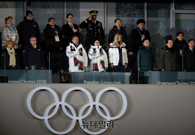 2018평창동계올림픽 폐회식이 25일 오후 강원 평창올림픽스타디움에서 열린 가운데 문재인 대통령과 북한 김영철 통일선전부장, 이방카 미국 트럼프대통령 보좌관, 류옌둥 중국 국무원 부총리 등이 참석해 자리하고 있다. (사진=공동취재단)
