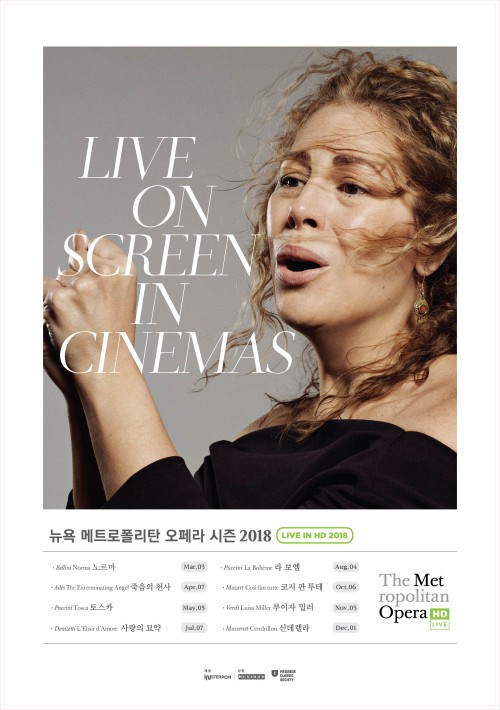 메가박스의 큐레이션 브랜드 클래식 소사이어티가 '2018 시즌 메트 오페라' 라인업을 공개했다.상영작은 세계 3대 오페라로 손꼽히는 뉴욕 메트로폴리탄 오페라의 공연 실황 영상으로, 메가박스의 뛰어난 음향 시스템과 일반 HD의 4배 이상의 화질을 자랑하는 4K 디지털 프로젝터를 통해 실제 공연을 보는 듯한 생생한 느낌을 선사한다.'2018 시즌 메트 오페라'에서는 벨칸토 오페라의 정수인 '노르마'를 시작으로 '죽음의 천사', '토스카', '사랑의 묘약', '라 보엠', '코지 판 투테', '루이자 밀러', '신데렐라' 등 다양한 작품을 선보인다.올해 시즌을 여는 첫 작품은 아리아 '정결한 여신'으로 유명한 벨칸토 비극 오페라의 대표작 '노르마'이다. 로마제국 시절 갈리아 민족의 여제 '노르마'의 사랑과 복수, 희생을 극적으로 그려낸다.